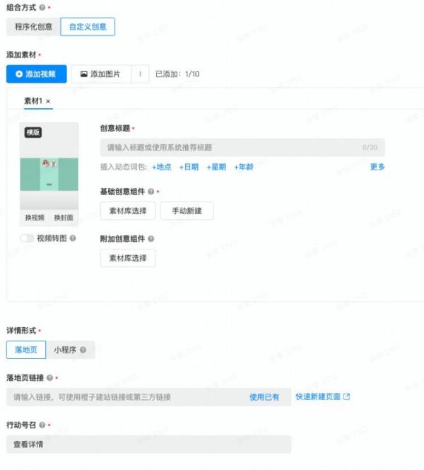 第二步:设置创意详情页