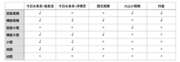 •竞价广告广告位选项支持的素材类型对应表: