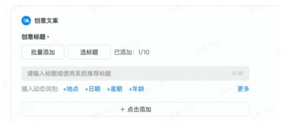 添加创意标题,支持标题选择(最多可设置10个标题)