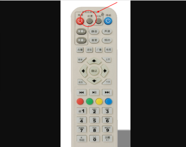 1、操作机顶盒遥控器:长按“设置”键约3秒左右,提示灯会长亮。