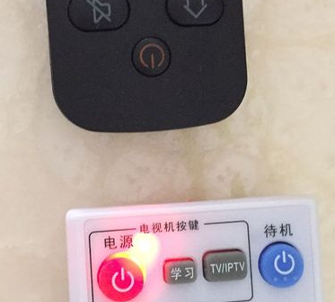 1、机顶盒遥控器和电视机遥控器(遥控灯)头对头放着,确保都有电。