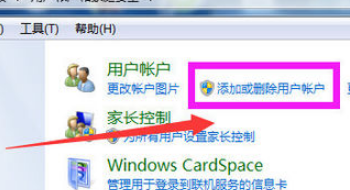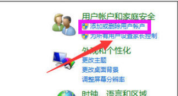 4、也可以在控制面板页面,点击“用户账户和家庭安全”下面的“添加或删除用户账户”。