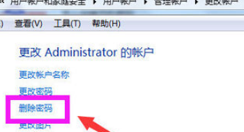 6、进入更改账户页面,点击左侧的“删除密码”。