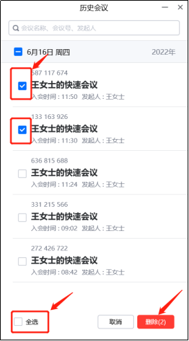 (2)随后,找到要移除的会议,选择“删除”,再确定“删除”即可。