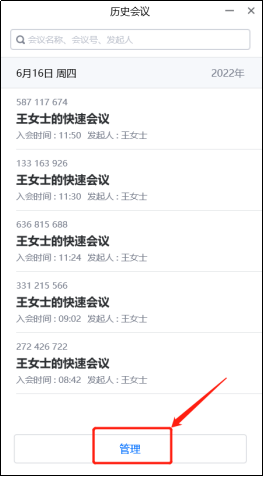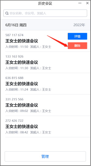 (3)也可以批量删除会议,点击下方的“管理”,选择要删除的会议室,进行删除。