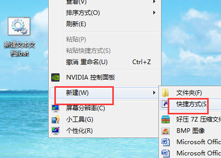 六、接着右键点击桌面空白处,菜单内点击“新建”-“快捷方式”。