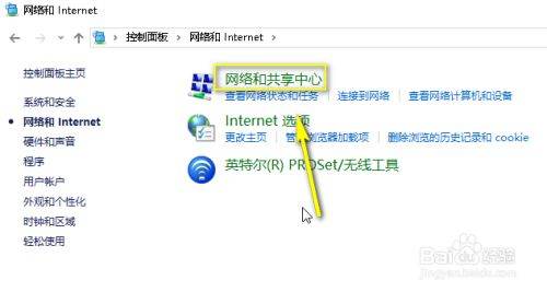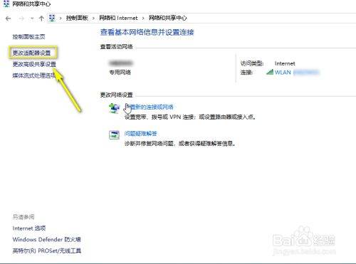 进入共享中心,点击左侧的更改适配器设置,如下图所示