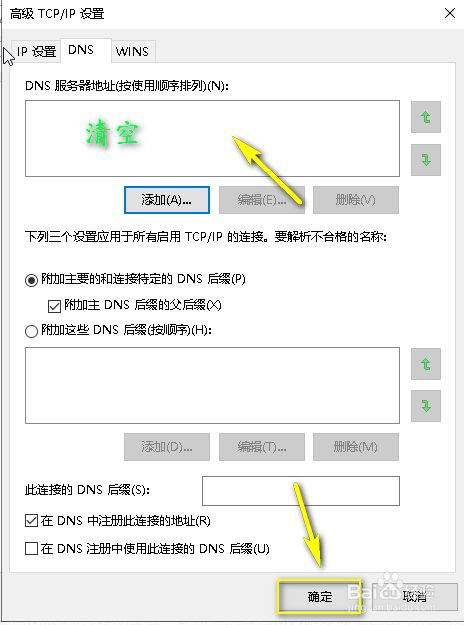 DNS列表清空后点击确定按钮退出,重启电脑即可,如下图所示