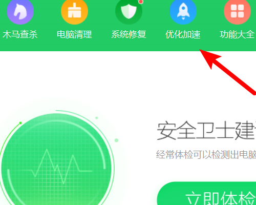 5、另外,也可以打开电脑的360进入,选择上方的优化加速的选项。