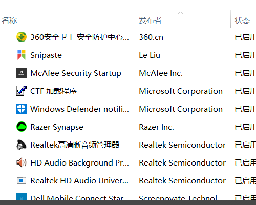 7、点击后,也可以看到开机自启动的应用,可以点击后方的禁止启动来管理。