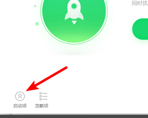6、点击进入后,在优化加速界面,点击左下方的启动项的选项。