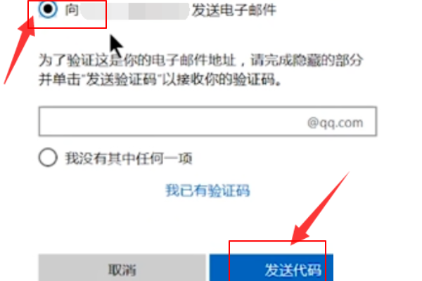 7、选择发送到电子邮箱的验证方式,点击发送代码。