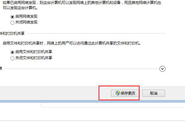 7、勾选启用网络发现后,点击保存更改。