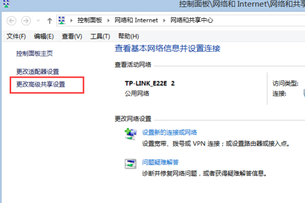 5、在弹出的页面中左侧找到更改高级共享设置,点击打开。