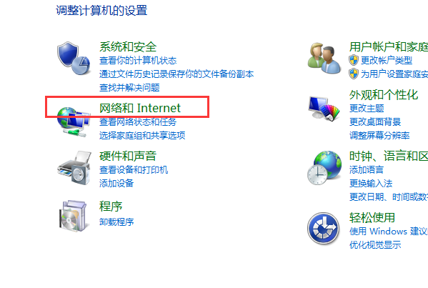 3、在弹出的界面中找到网络和internet选项,点击打开。