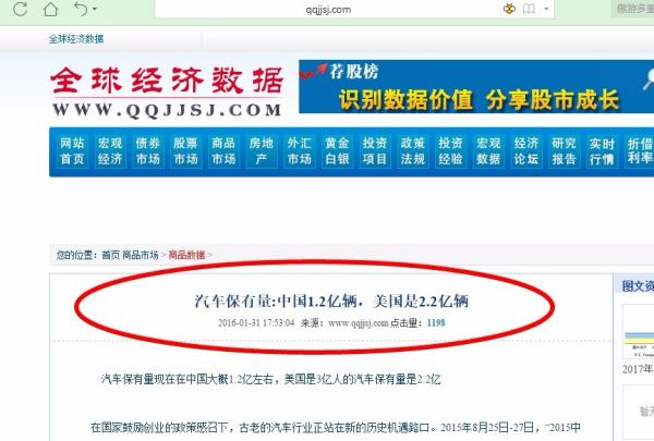 2016年,汽车保有量:中国1.2亿辆,美国是2.2亿辆。