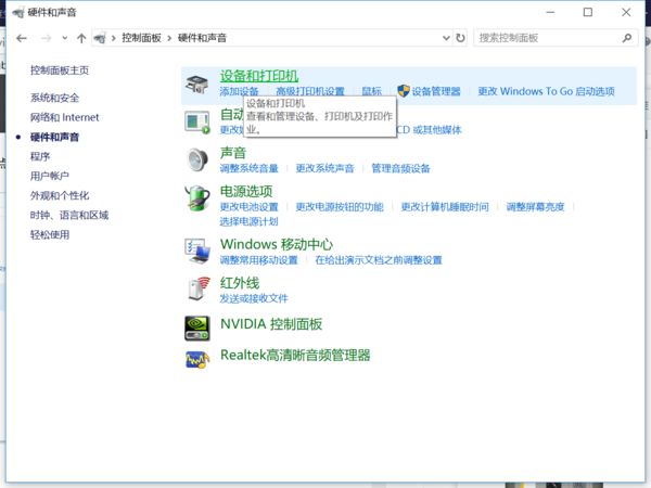 2、在打开的窗口中一次点开【硬件和声音】-【设备管理器】