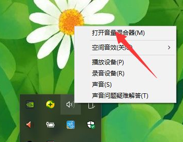 2、还有一种就是对着系统喇叭点击右键,选择音量合成器。