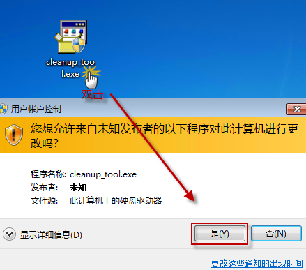 3、双击运行 Cleanup_tool.exe 清理工具,弹出确认窗口后,请单击“是”继续。