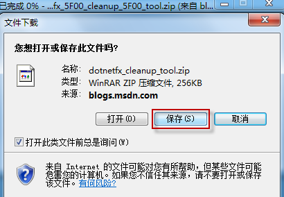 1、请点击下载.NET Framework 自动清理工具。在文件下载窗口,单击“保存”按钮将文件另外保存(例如,这里我们保存至桌面)。
