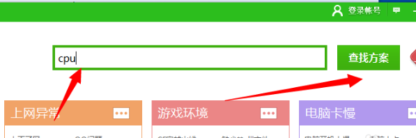 4.进入人工服务界面,在搜索栏输入cpu点击后面的查找方案,【立即修复】。