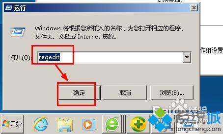2、输入regedit,点击确定;