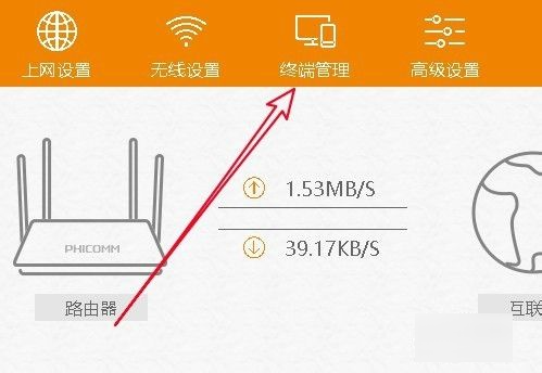 3、然后在打开的路由器的管理页面中,点击“终端管理”的图标。