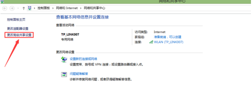 (1)打开“网络和共享中心”,点击右下角的网络图标进入“更改高级共享设置”设置;