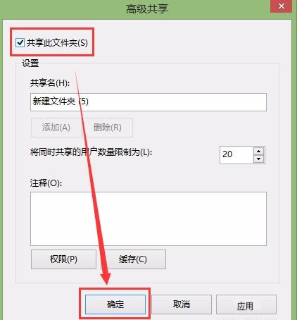 (4)再设置共享文件夹,就是电脑存放扫描文件的文件夹,右键文件夹,选择属性--共享按钮,点击添加“everyone--读取/写入--共享”,选定”共享此文件夹“,确定,完成。