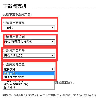 4、依次选择产品种类、系列、型号、文件类型(驱动)。