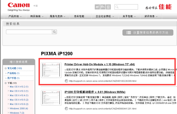 5、自动跳转到支持该打印机的驱动下载页面,找到支持WIN7的打印驱动下载。