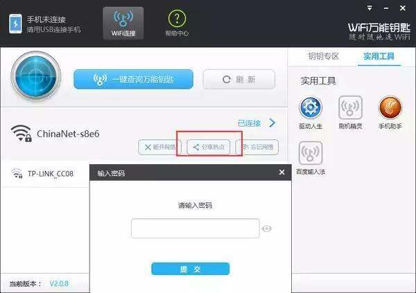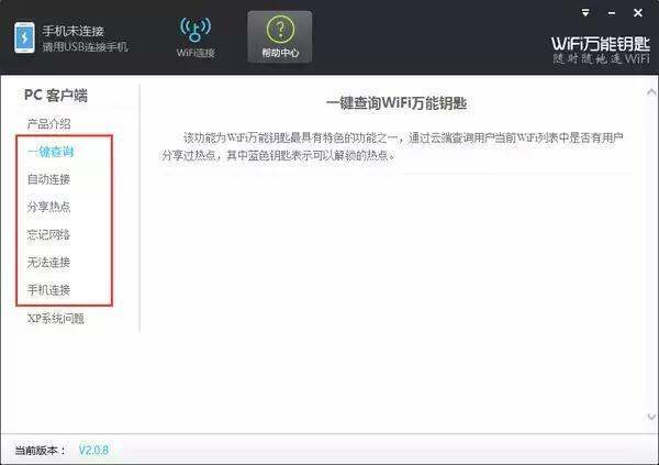 3、WiFi万能钥匙有一键查询、自动连接、分享热点、手机连接等功能。