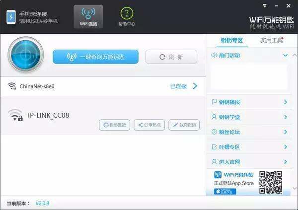 1、WiFi万能钥匙电脑版是通过PC无线网卡,自动获取用户周边免费WiFi热点并连接免费上网的windows必备工具。