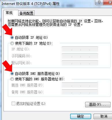 5、勾选自动获得IP和自动获得DNS,如下图: