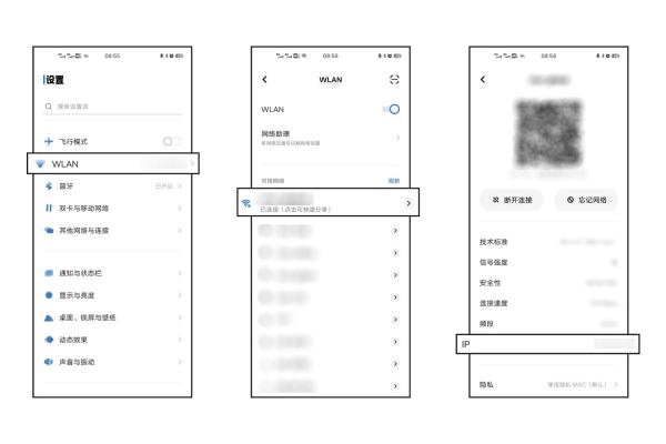 1、进入设置--WLAN--点击已连接的WiFi--IP--查看IP地址;