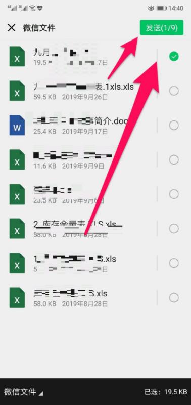 3、找到到要发送的文件,并勾选上,选择发送到文件助手。