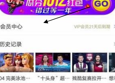 2、在这里你会看到你的优酷账号,会员中心、历史记录等一些个人信息。这时候点击“会员中心”进入。