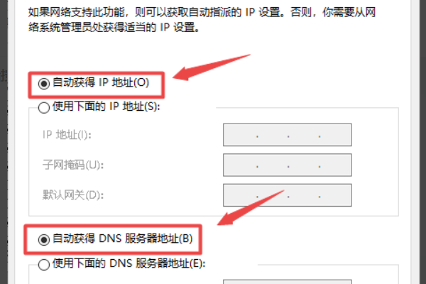5、打开了Internet网络协议4之后,将IP地址和DNS服务器地址都设置为自动获取。