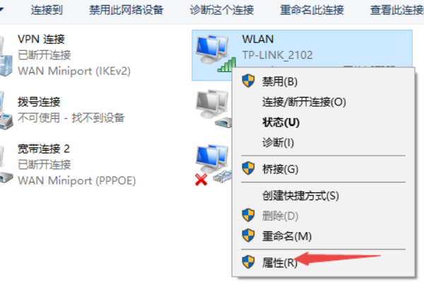 3、进入到网络连接中心,点击WLAN,选择属性。