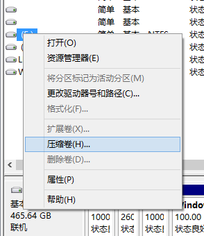 4.右键点击E盘,选择压缩卷。