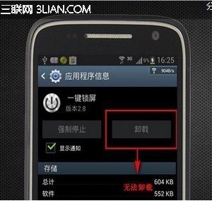取消激活后,我们在应用程序管理中找到锁屏软件,按卸载普通程序一样的方法就可卸载了。