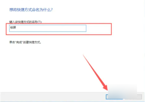 3、键入快捷方式的名称,这里输入“锁屏”,点击完成,以后双击即可锁屏。