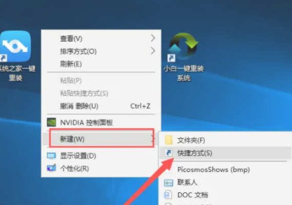 1、右击桌面空白处,选择“新建”,然后选择“快捷方式”。