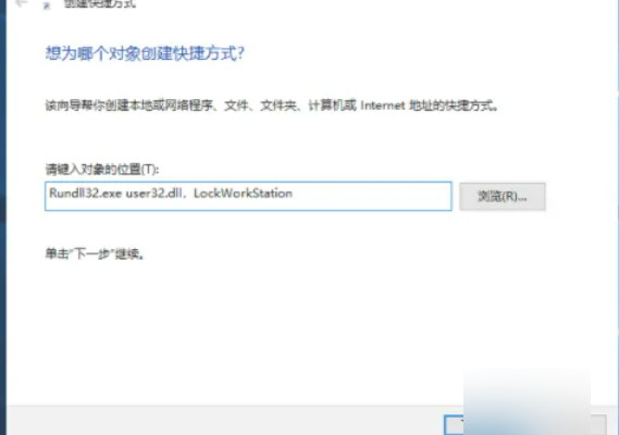 2、弹出创建快捷方式窗口,在“请键入对象的位置”处输入下面指令,完成后点击下一步。