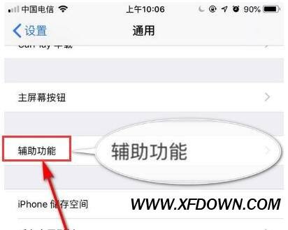 3、在通用的设置界面找到辅助功能选项,然后点击进入,如图所示: