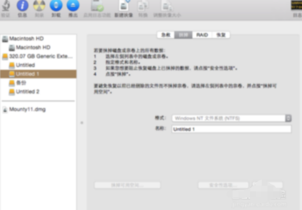 4、点击“抹掉” 这就是在准备格式化你所选取的磁盘