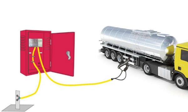 移动设备,如汽车槽车、火车罐车、油轮、手推车,以及移动式容器的停留、停泊处,要在安全场所装设专用的接地接头如颚式夹钳或螺栓紧固,使移动设备良好接地,防止移动设备上积聚电荷。当槽车、油罐车到位后,停机刹车,关闭电路。