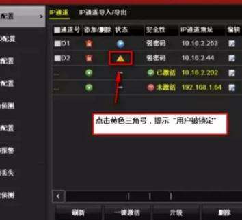 1、海康录像机通道用户被锁第一种原因是使用了错误密码,如果是使用了错误密码首先就需要删除IP通道。