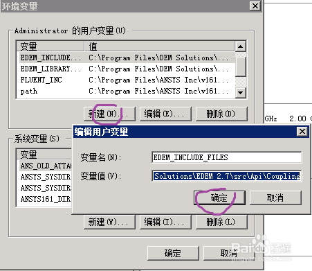 点击新建按钮,变量名EDEM_INCLUDE_FILES,变量值C:\Program Files\DEM Solutions\EDEM 2.7\src\Api\Coupling。点击确定按钮即可新建EDEM_INCLUDE_FILES变量。