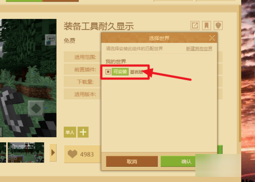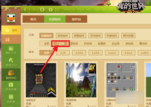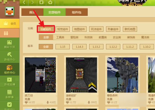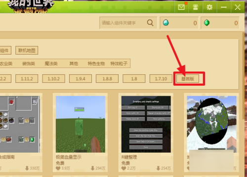 1、首先需要进入组件中心,点击右侧的基岩版,然后点击一个模组。